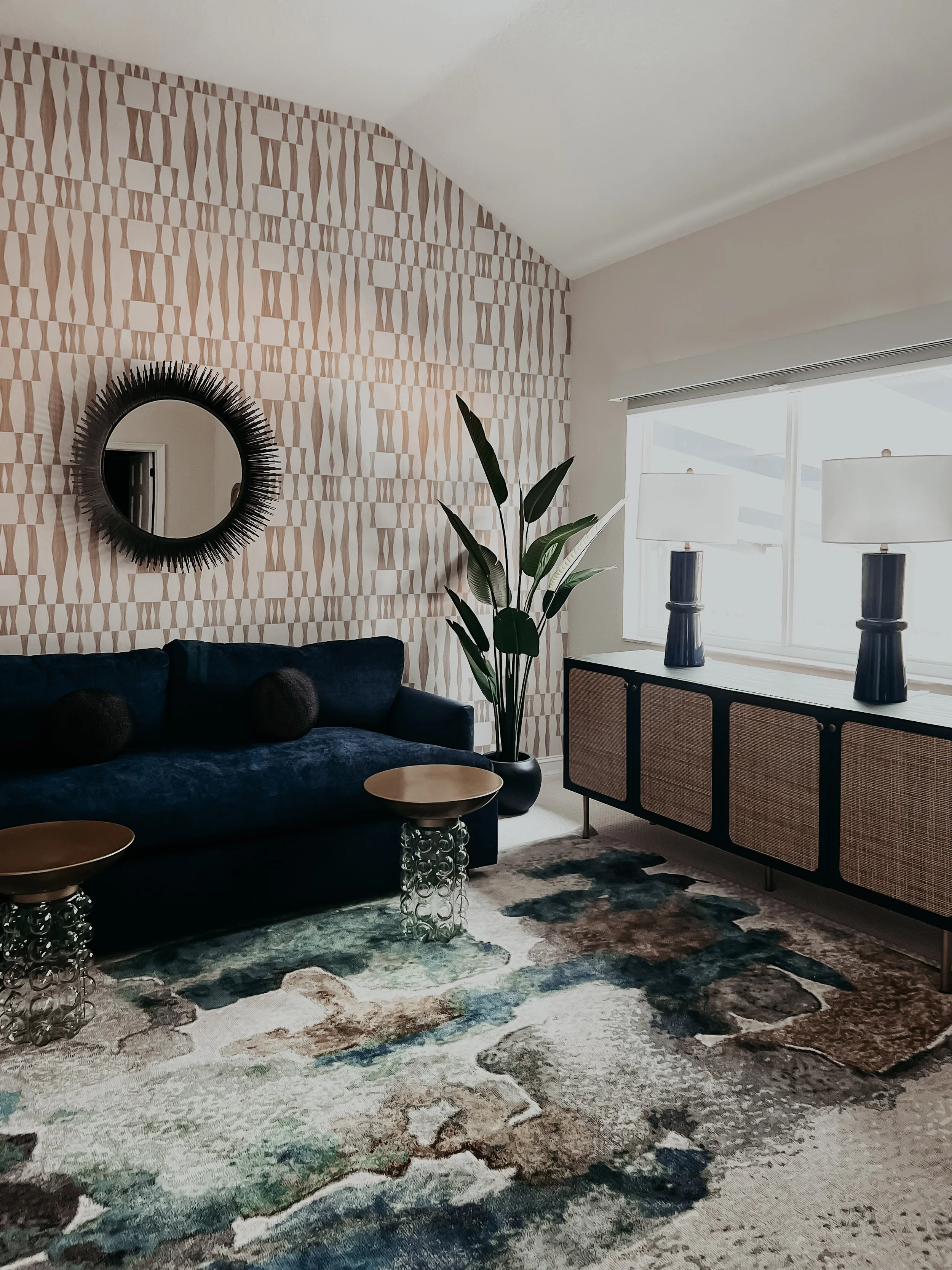 Project 132 (Living) Jan 7 Written By madison massaro For this kids playroom, we prioritized both looks and function. Complete with a sleeper sofa, textured wallpaper, lots of storage, and a kid-friendly, colorful eclectic design style. madison massaro