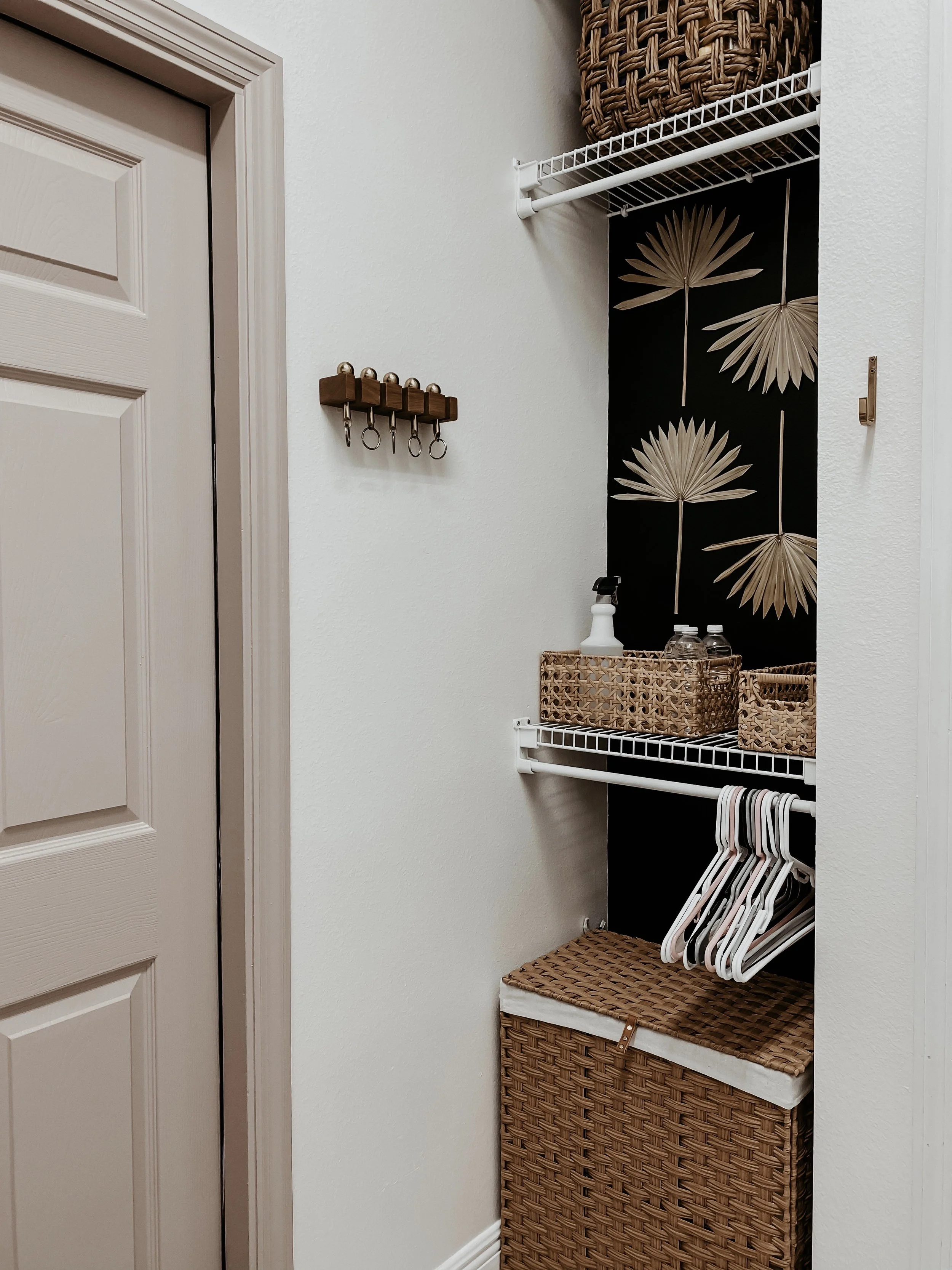 Project 51 (Laundry) Aug 15 Written By madison massaro These clients wanted a fun and modern space that would make doing chores feel more desirable! We added in pretty boho elements with the moody black walls that mixed perfectly with the gorgeous mauve door. madison massaro